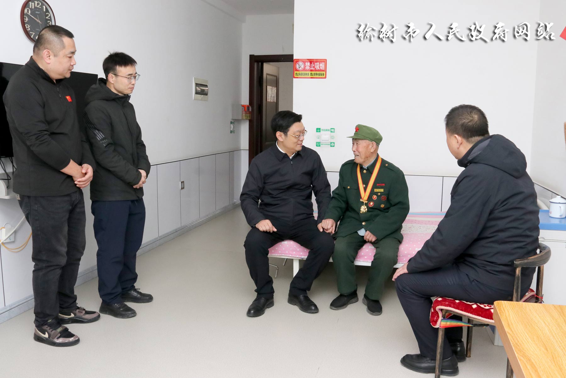 年过百岁的解放战争老战士李秀丰在市光荣院的悉心照顾下,仍然身体健康,精神饱满。来到市光荣院,吴威与李秀丰亲切交谈,提到当年参加解放战争那段峥嵘岁月,老人显得精神抖擞、斗志高涨。当看到光荣院生活空间宽敞明亮、厨房食堂干净整洁、老人们生活十分幸福时,吴威要求工作人员要持续提升管理服务水平与供养保障质量,在服务上更加温馨周到、细致入微,用心用情用力照料好老人们的生活起居,真正实现老有所养、老有所依、老有所乐,让他们安享幸福晚年,切实感受到党和政府的关怀与温暖,全力营造拥军优属、拥政爱民的浓厚氛围。