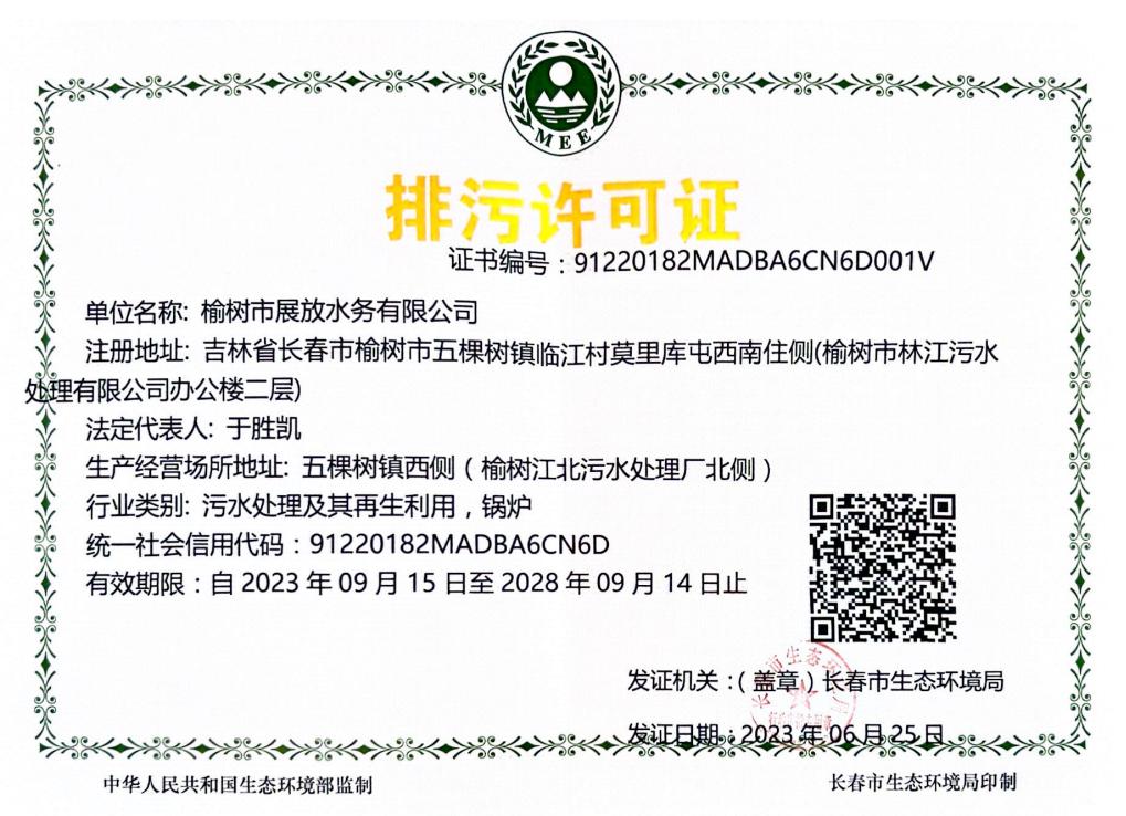 单位地址:吉林省长春市榆树市五棵树镇临江村莫里库屯西南侧(榆树市林江污水处理有限公司办公楼二层)