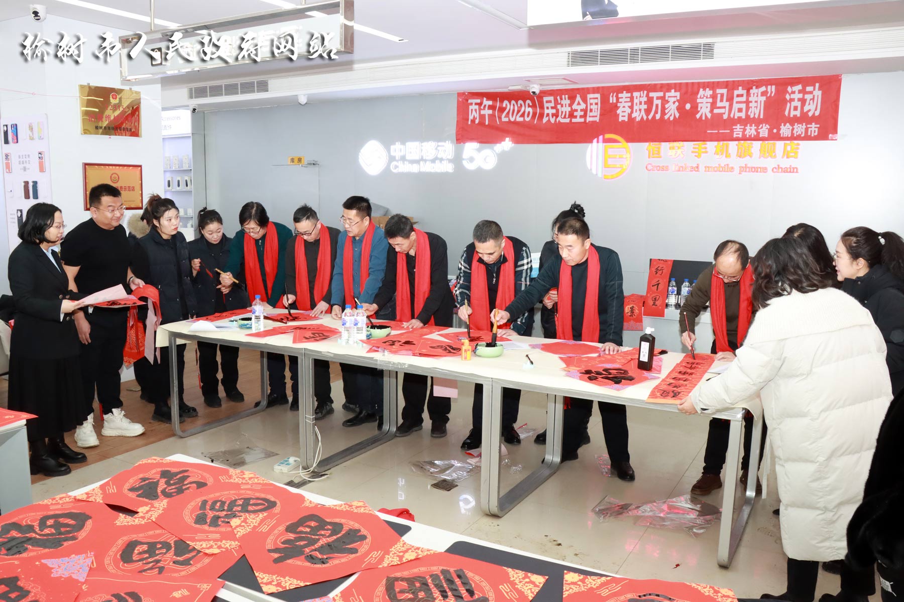 挥毫书写榆乡美,泼墨绘就振兴图。在2026丙午马年新春佳节即将来临之际,为弘扬中华优秀传统文化,传递民进组织的暖心关怀,1月15日,民进榆树市委会精心策划的“春联万家•策马启新”文化惠民活动正式启动,活动以“笔墨颂新春联心聚合力”为主题,组织榆树民进开明书画院的书法家走进企业商户,以笔墨为媒,将满满的新春祝福送到千家万户,让浓浓的年味在墨香中愈发醇厚。